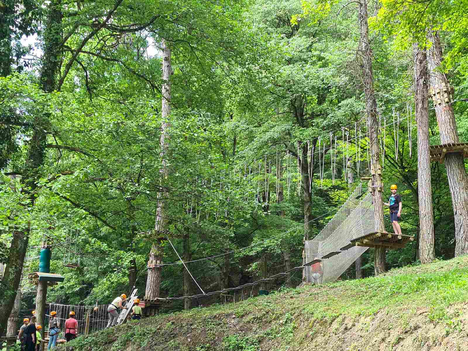 Današnji izlet zahtijevao je od sudionika da pokažu hrabrost, srčanost i odvažnost u suočavanju sa novom izazovnom situacijom u vidu poligona u sklopu adrenalinskog parka. Iako su prvi koraci većine sudionika bili nesigurni, uz puno ohrabrenja i međusobne podrške svi koji su se odvažili uspjeli su ga proći. Neke od njih nakon početnog straha bilo je teško spustiti s poligona pa su “užicali” dodatno vrijeme, a neki su bezuspješno nagovarili svoje tete i instruktore da ih puste da se okušaju i na vekom poliganu, koji još nije primjeren za njihovu dob.