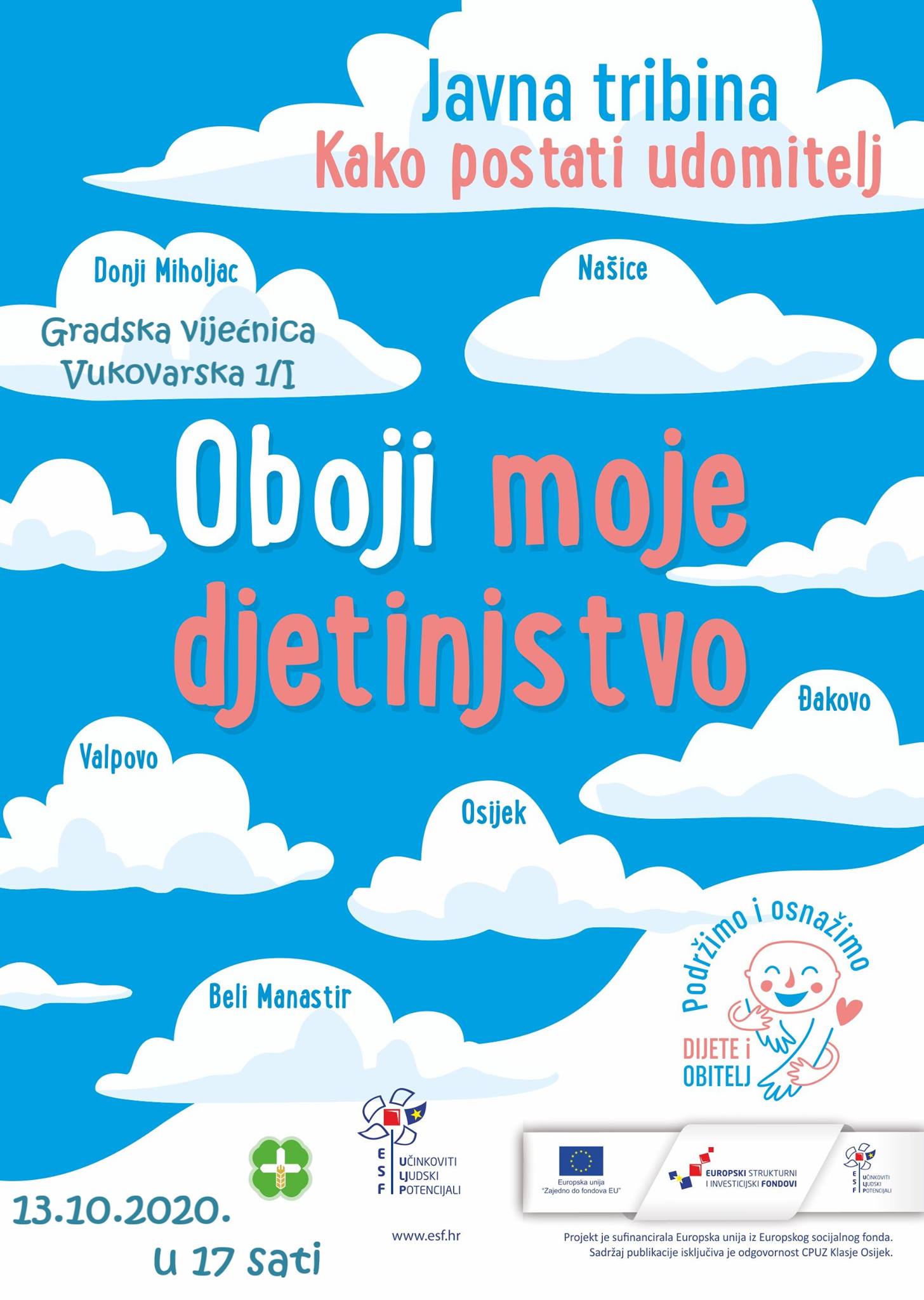 Tribina se organizira u okviru projekta “Podržimo i osnažimo dijete i obitelj”, koji financira Europska unija iz Europskog socijalnog fonda (ESF), u iznosu od 5.987.667,50 kn.