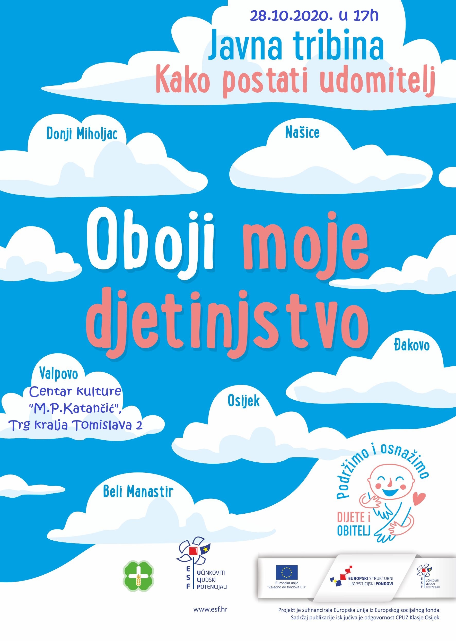 Nastavljamo s provedbom tribina usmjerenih promicanju udomteljstva. Naša sljedeća tribina održat će se u Valpovu 28. listopada 2020., s početkom u 17 sati, u prostorima Centra kulture “M.P.Katančić“, na adresi Trg kralja Tomislava 2.