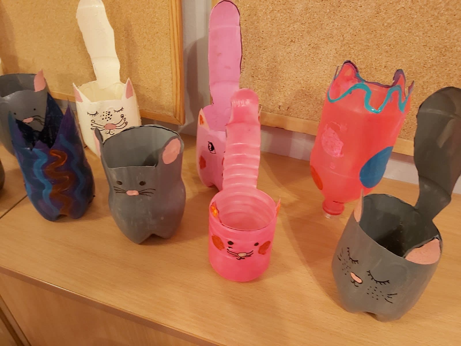 Boce smo prvo rezali u obliku životinja te ih bojili akrilnim bojama, potom smo ih ukrašavali kako bismo ih pretvorili u mace i mišiće i na kraju smo u njih posadili cvijeće. Naši predivni kalići sada krase naše prozore!