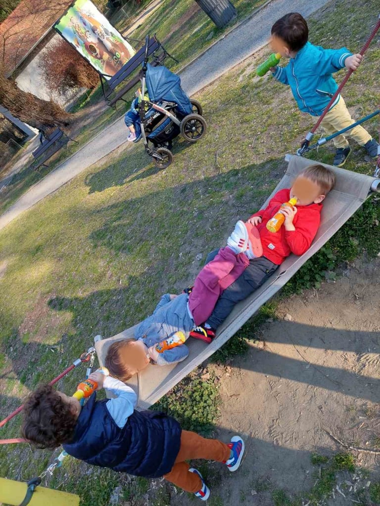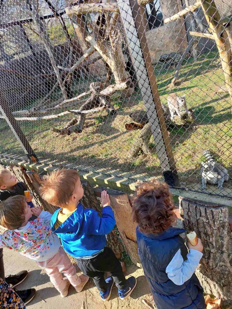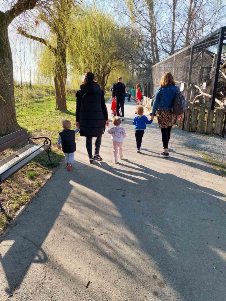 Krenuli smo jednog sunčanog poslijepodneva u pravu malu avanturu… Uvijek se veselimo vožnji u „bombiju“ jer znamo da će nas odvesti na lijepo i zabavno mjesto. Ovaj put bilo je to mjesto prepuno raznih velikih malih, umiljatih, opasnih, pernatih, tihih, ali i glasnih životinja. Pogađate, bio je to prvi posjet zoološkom vrtu. Bilo je smiješno, zabavno i čudesno. Što li se motalo po tim malim glavama u tim trenutcima? Nakon takvih doživljaja i šetnje uvijek dobro dođe odmor, igra i osvježenje.